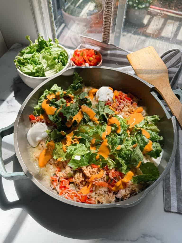 To me, mexican food is the easiest to make gluten free and nut free! Which means, its SUPER easy to make allergy friendly. This chicken taco rice casserole is an easy gluten free meal. It is also a nut free recipe.