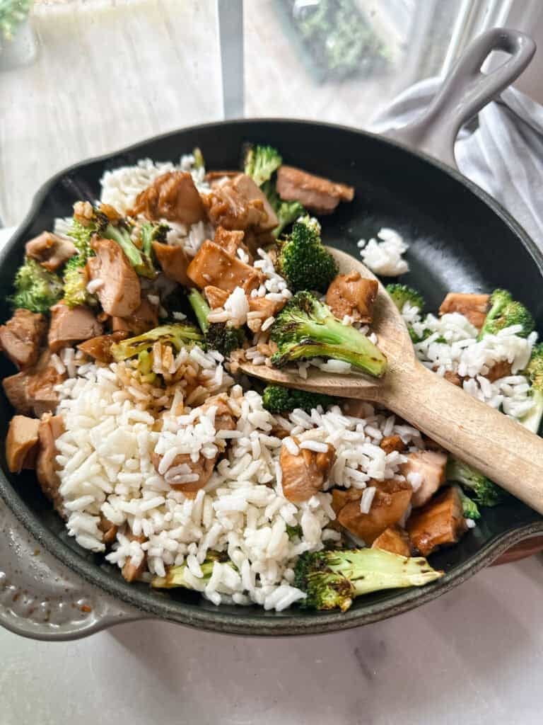 This gluten free chicken teriyaki is an easy gluten free dinner. It is perfect for a busy weeknight dinner or a quick lunch. This recipe is a great alternative to take out when you have to avoid gluten! It is made in less than 30 minutes and uses minimal ingredients, just like my gluten free rice paper tacos.