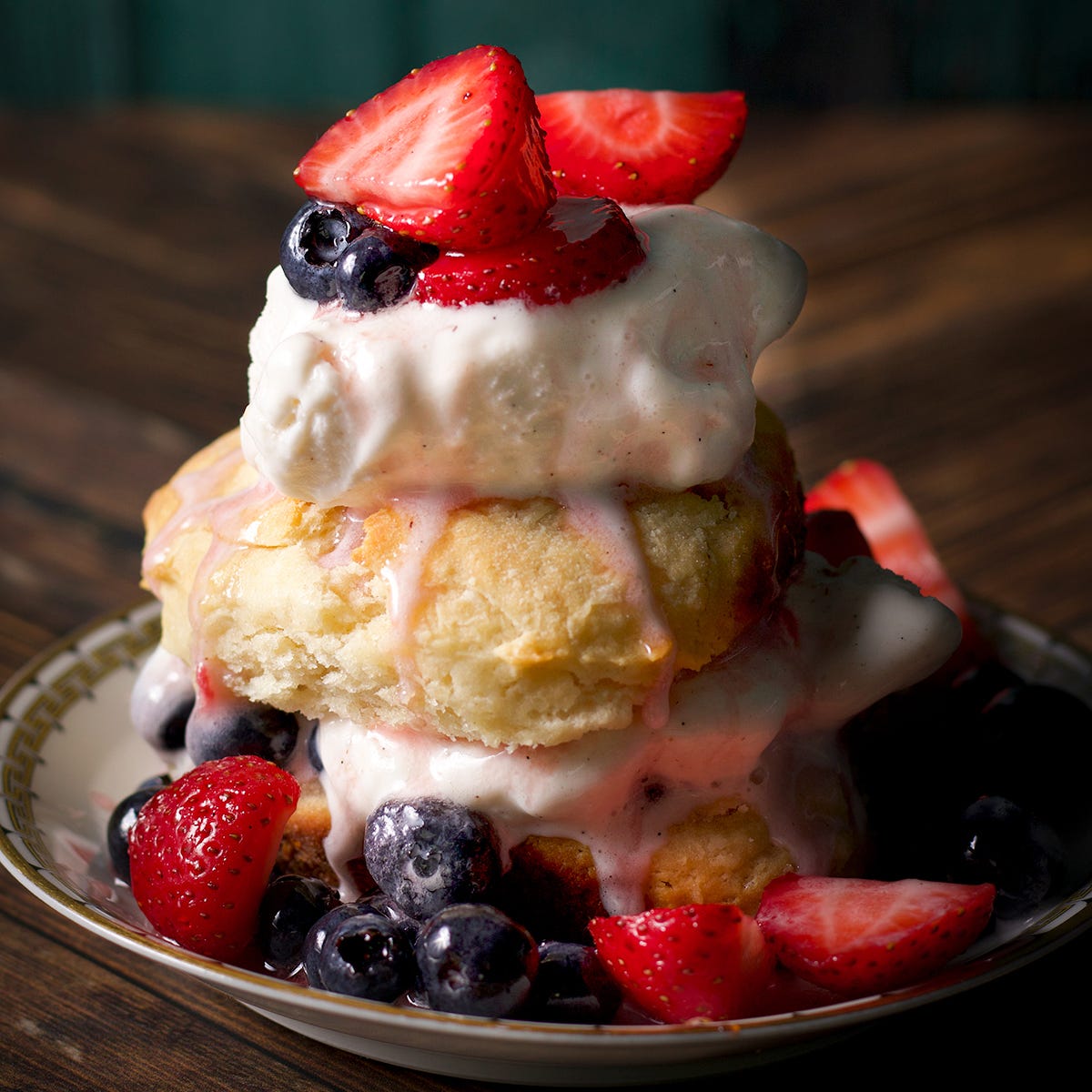 Photo by Rebecca Blackwell: Strawberry shortcake made with my Grandma’s Angel Biscuit recipe, fresh berries with sugar and a pinch of salt, and vanilla ice cream. The swap of ice cream for whipped cream was at the suggestion of Christina Fiore, and I will never go back.