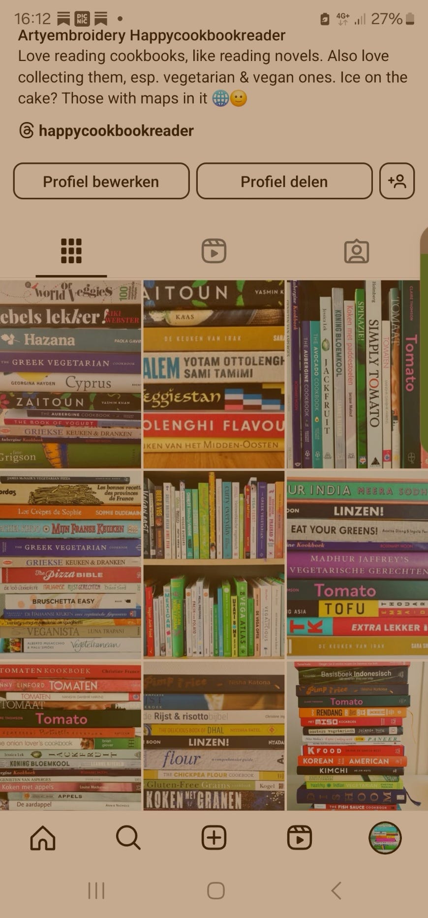 Some years ago I realized my cookbook stack had reached quite a size, nowadays it’s 346 to be exact. I also realized I would love to get inspired by other cookbook collectors about their collection. I couldn’t find those people however. So I decided to put things around and I decided to inspire others myself, by sharing photos and information about my collection. Instagram seemed to be the perfect tool for me, because of the visual approach it uses in communicating. The rest is history, I started my Instagram account happycookbookreader in 2019.