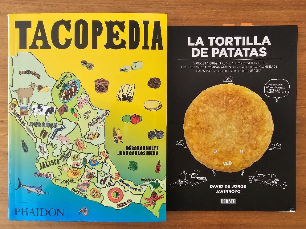 Books I also would like to mention are Tacopedia and La tortilla de patatas. Both books have beautiful hand drawn illustrations. Tacopedia’s cover (by Phaidon) is bright and colorfull, the book’s paper is newspaper-isch and it has lots of non-glossy photo’s, what makes them more “real”. Above that it gives lots of background stories and facts. La tortilla de patatas, by David de jorge and Javirroyo, did I buy on Fuerteventura, a Canary Island. It’s a graphic cookbook comic, the design is a mixture of handwriting, drawings and photo’s. The whole book is about the Spanish dish tortilla de patatas, based on eggs and potatoes and often eaten as a snack in the afternoon.