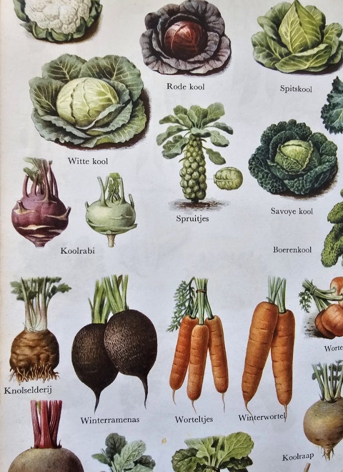 It also has beautiful old-fashioned looking drawings of fruit, vegetables and meat / fish, that nowadays aren’t made anymore. Now and then I take this book from the shelve on a Friday evening, and just look at the drawings.