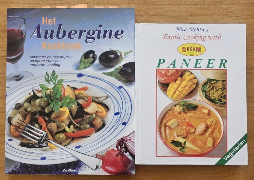 The Eggplant Cookbook by Rosemary Moon (1998) is another book I used a lot in my thirties. I am fond of eggplant, just love the firm feeling outside and the way it absorbs flavors! A successful dish I made for years when having guests, is Italian cannelloni filled with eggplant & tomato and eggplant & walnuts. I developed this recipe, being inspired by this cookbook. Recently, I got to know that in September of this year, a new cookbook about eggplant will be published by cookbook writer Jigal Krant. Looking forward to it already! It will be interesting to compare the two books, being a journey through time in the use of eggplant.