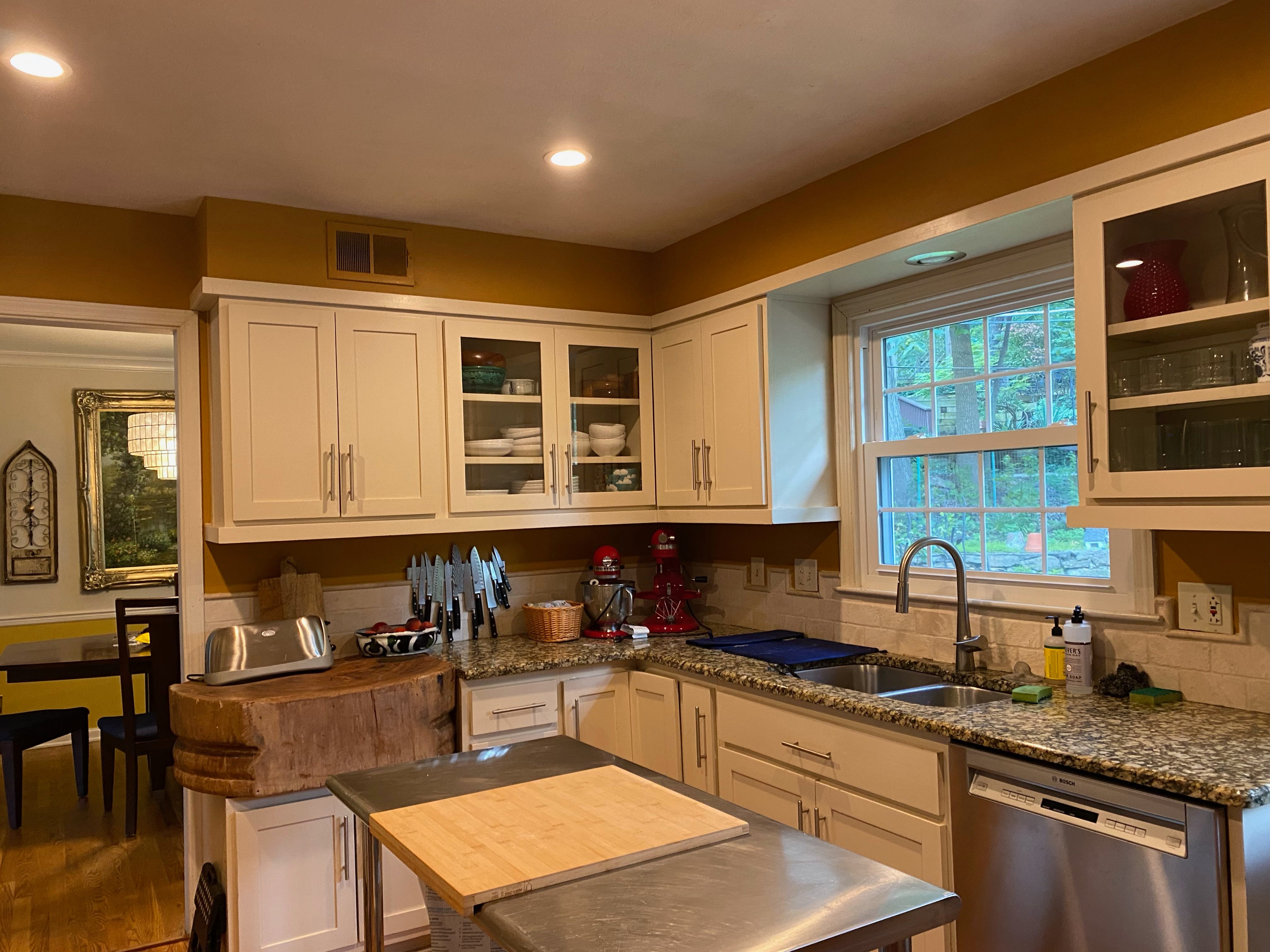 I work there developing and testing recipes, photographing in the bay window, and live streaming classes. We cook there for our family meals, and bake many gluten free breads and pies. My husband works from home and my two school aged children are often popping in and out of the kitchen, cooking with me briefly, asking questions, and packing lunches or zooming through far too quickly to run down the stairs.