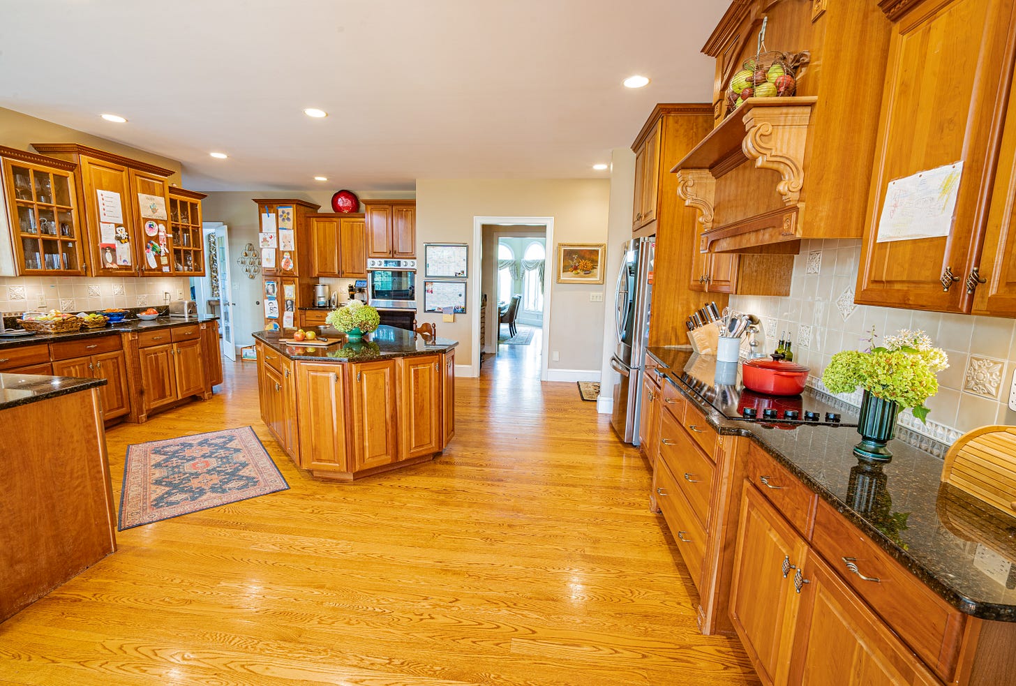 A. I am fortunate to have a large kitchen that is definitely the opposite of the cramped galley kitchens I started with! My kitchen has a modern French Country feel with ivory tile backsplashes, dark granite counters, and lots of cherry wood cabinetry. The working area where I make and create all of my recipes opens up to a sunny eat-in area with windows on three sides, and long views of Mount Tom, (which local legend says was the inspiration for the “Grinch’s” mountain in the Dr. Seuss book). We use this room not only to enjoy breakfast around the table, but it’s also our main “photography studio” for our food and beverage photoshoots!