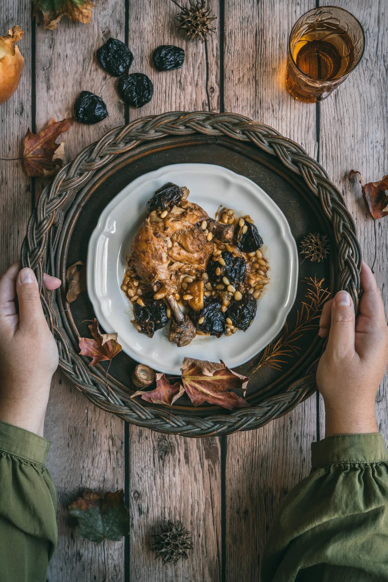 on how to have a great time at all of those parties and events this holiday season!I can think of no better holiday centerpiece than this Catalonian chicken with pine nuts and prunes from